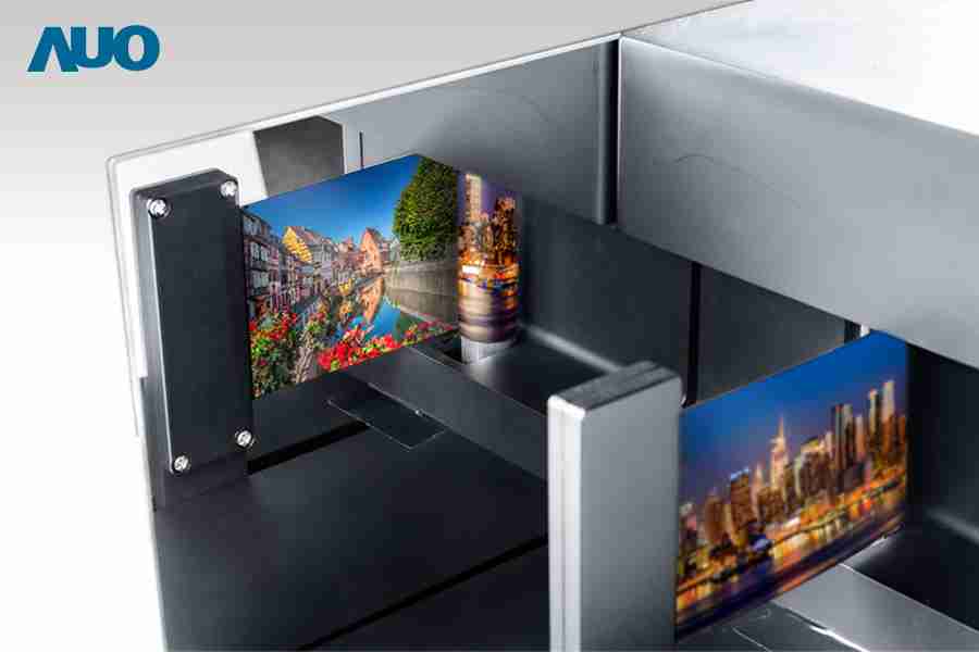 未来,,显示器很可能变得无所不在,,红龙扑克结合先进的 OLED 技术,,开创出 5.6寸双面可卷式 OLED 显示器,,展开时具备双面显示器,,,可提供给不同的使用者观看,,并且能以卷曲方式收纳,,能使人们更方便携带。。。红龙扑克以自主开发彩色滤光片 (Color Filter, CF) 取代圆形偏光片 (Circle Polarizer),,能大幅降低显示器模块厚度 50%,,,并维持一定的亮度呈现,,,目前已通过曲率半径 9mm 达 10 万次以上的卷曲测试,,,,耐用更可靠。。。可以在未来让多位使用者观看不同内容,,,为显示器带来更多新型态的未来应用。。。