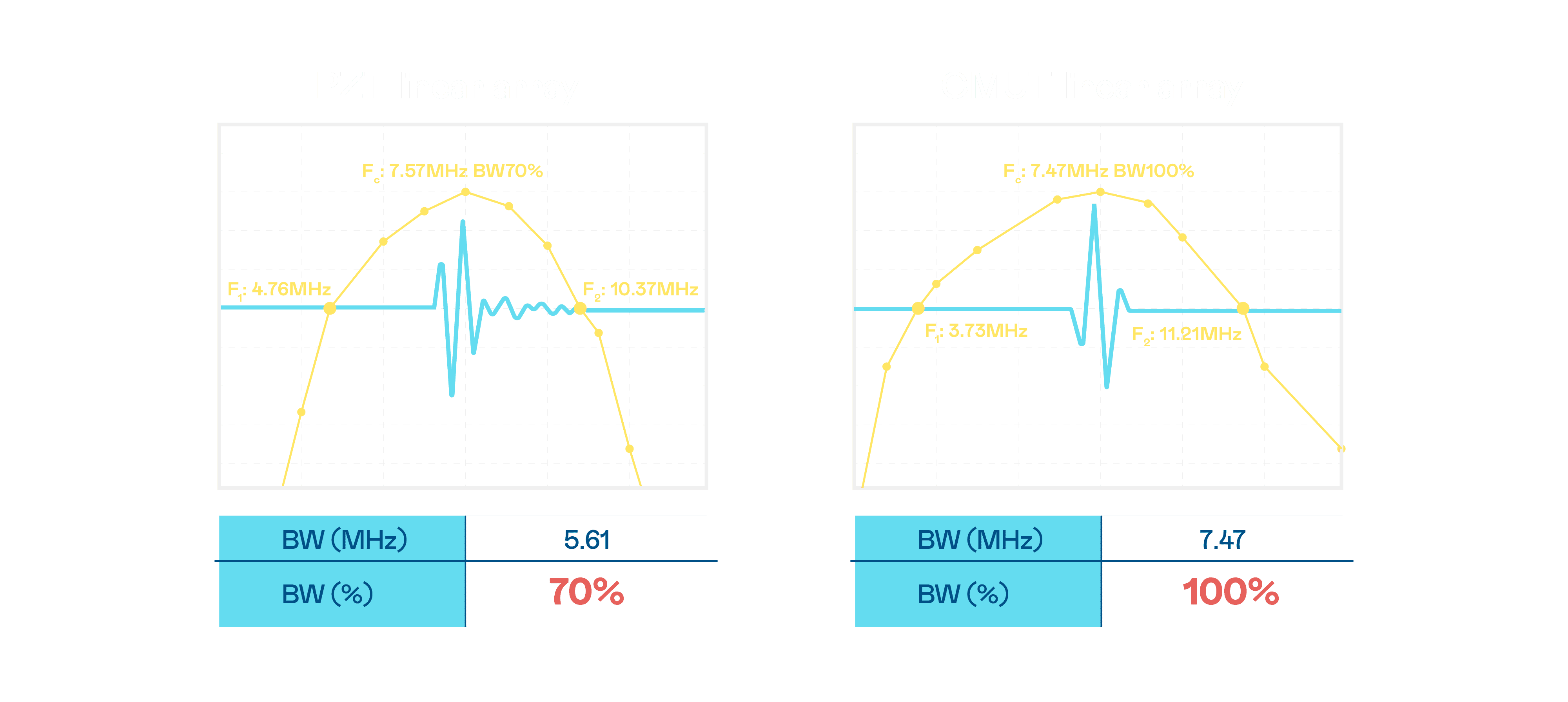 CMUT 技术是一种用电容式微机电元件来产生超音波讯号的技术。。。与传统 PZT 压电式技术相比,,,,CMUT 频宽增加 30%,,更宽频的超音波讯号让影像解析度大幅提升,,,是实现高影像品质医疗超音波扫描、、促进精准医疗发展的关键技术。。。。